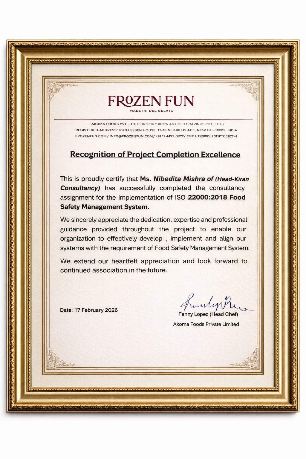 Guided food manufacturing units through FSSC 22000 implementation, hygienic audits, and certification readiness programs.